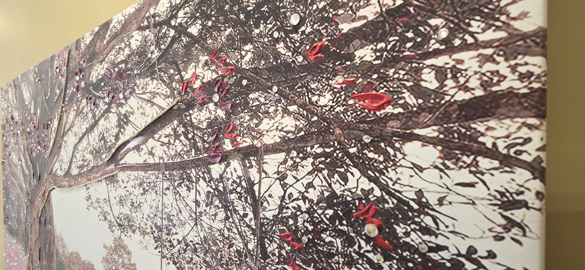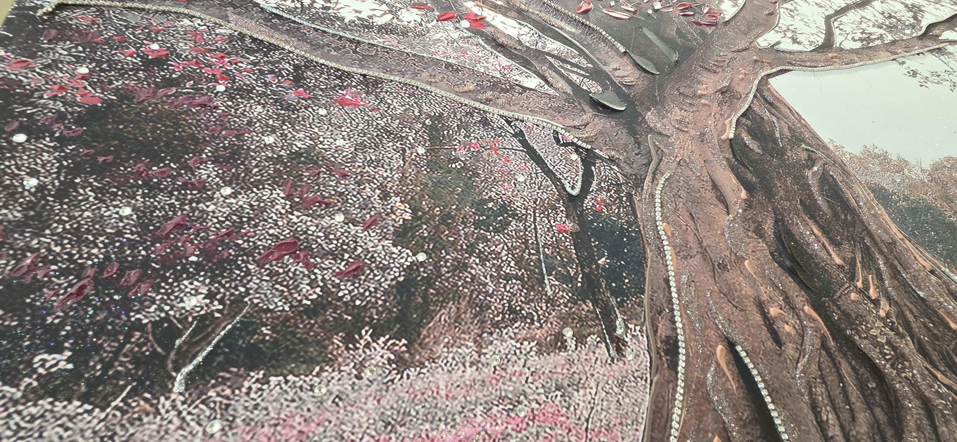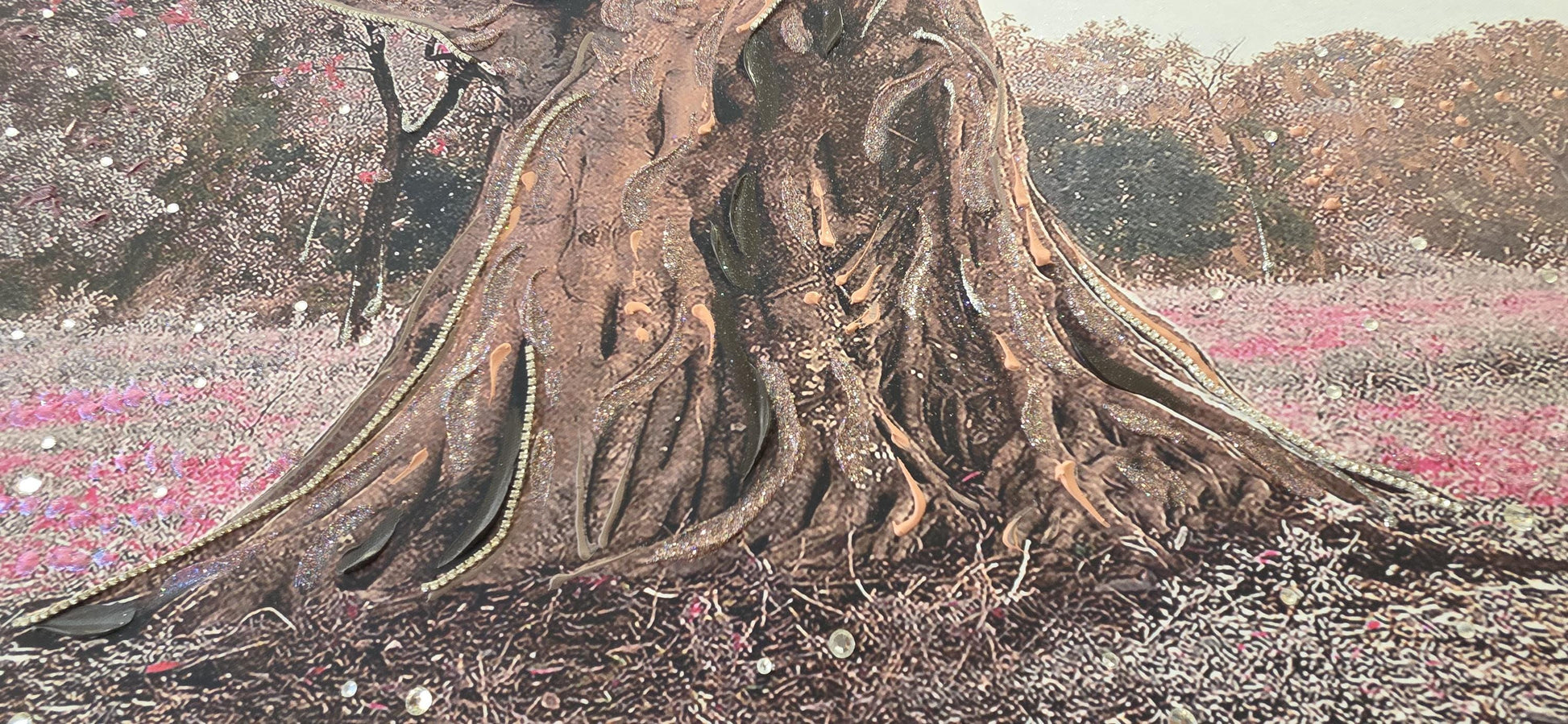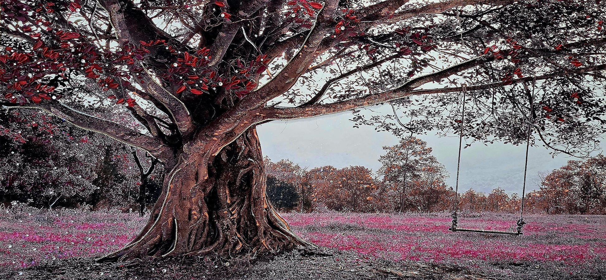 Quadro personalizzabile Albero con Altalena su Tela – Pittura Fatta a Mano con Swarovski e Glitter | Arredo casa/ufficio Classico e Moderno