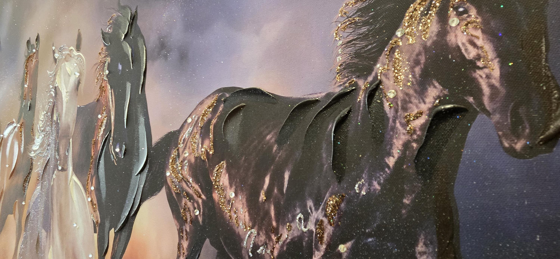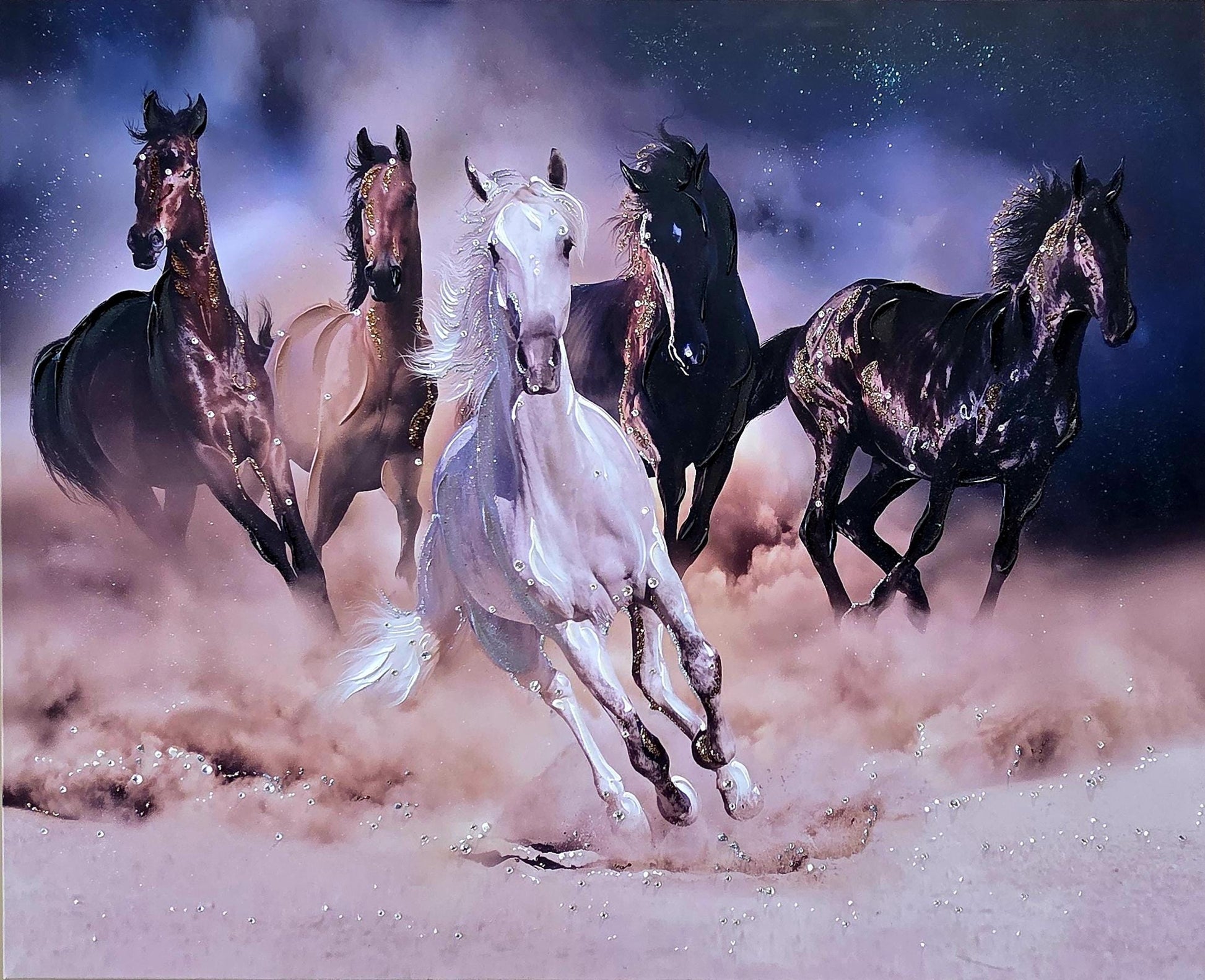 Quadro Personalizzabile Cavalli su Tela – Stampa Pittorica Fatta a Mano con Swarovski e Glitter | Arredo casa Classico o Moderno