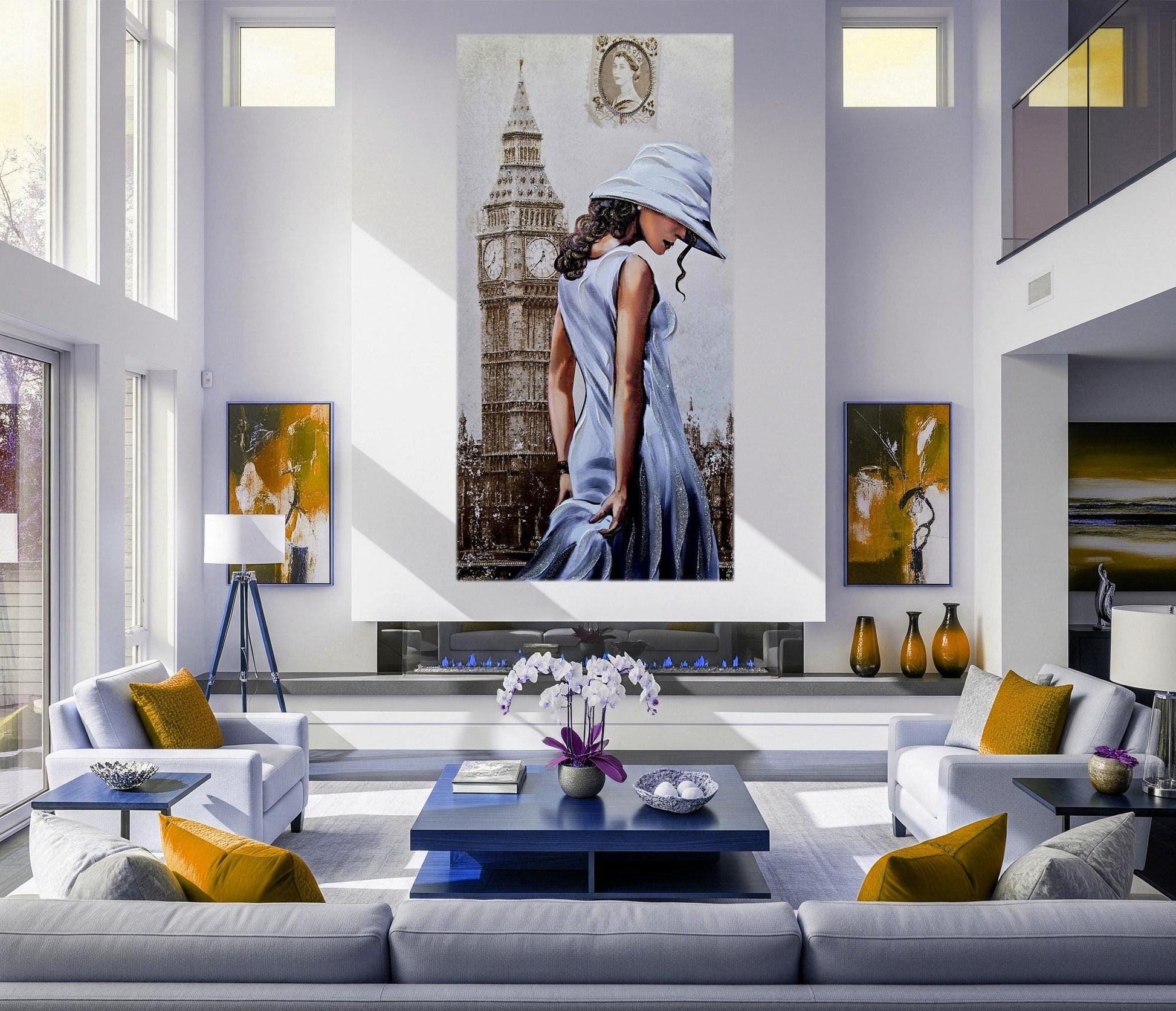 Quadro personalizzabile Donna figurativo Londra su Tela – Pittura Fatta a Mano con Swarovski e Glitter | Arredo casa/ufficio Classico e Moderno