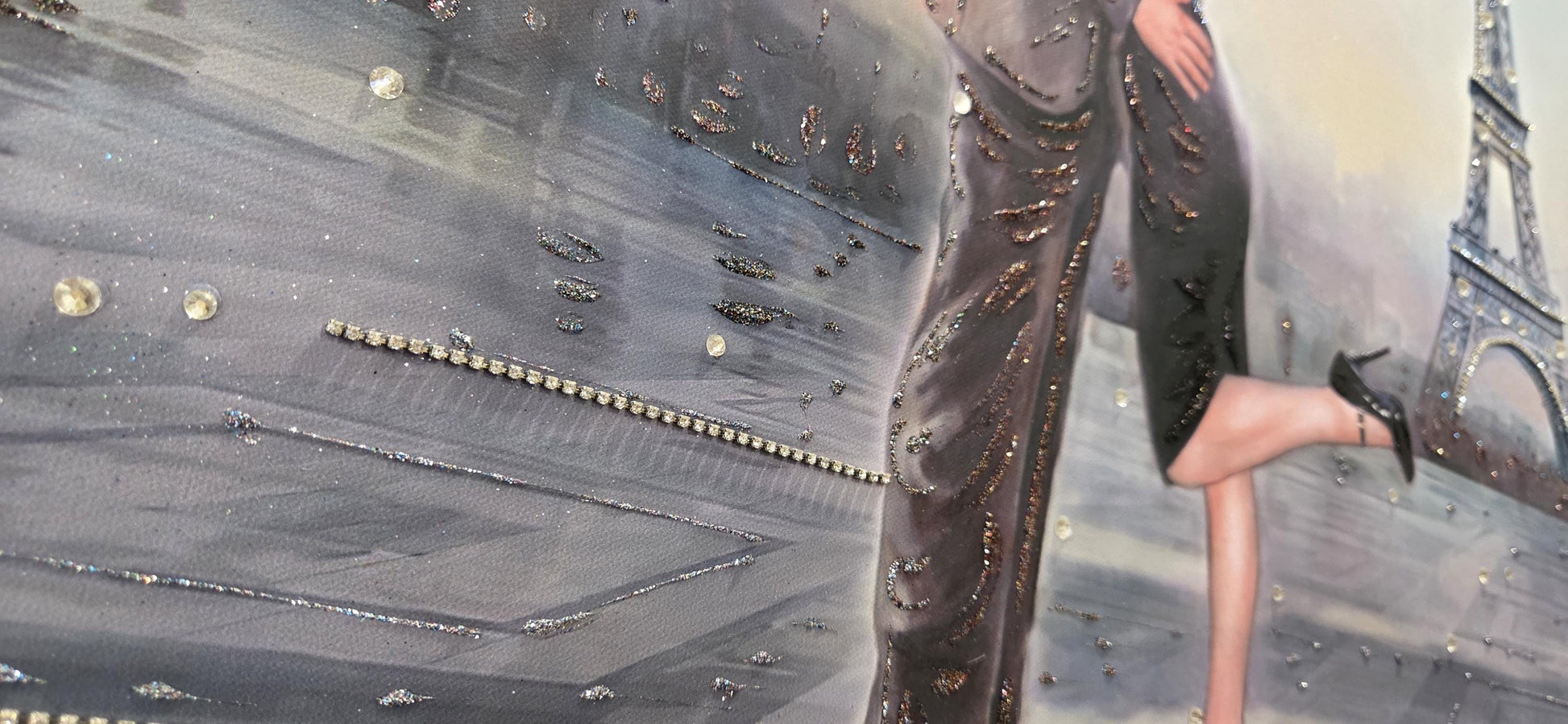 Quadro Personalizzabile Parigi su Tela – Stampa Pittorica Fatta a Mano con Swarovski e Glitter | Paesaggio Classico o Moderno