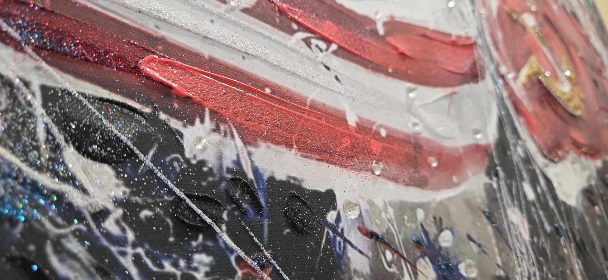Completamente fatto a mano con pennello ad effetto pittorico a sbalzo e rilievo con decorazioni e applicazione di swarovsky e glitter brillantinato, tela pittorica di altissima manifattura cotone /lino incrociato con disegno che gira sul bordo per un effetto immersivo ancora più impattante e telaio di abete lamellare aggiuntato levigato per una massima stabilità trattato per antitarlo e agenti atmosferici il tutto con trattamento vernice damar finale che ne consolida a vita i colori e la brillantezza.