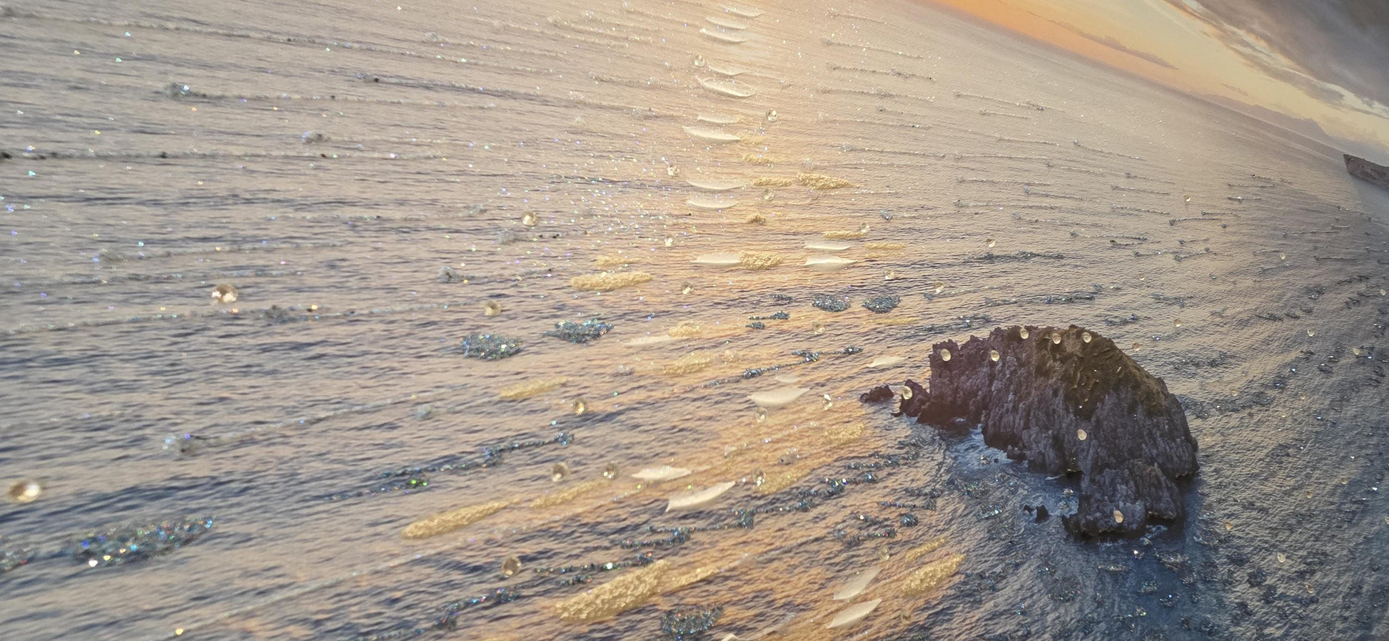 Quadro personalizzabile Mare su Tela con cornice decapè argento – Fatta a Mano con Swarovski e Glitter | Arredo casa/ufficio Classico e Moderno