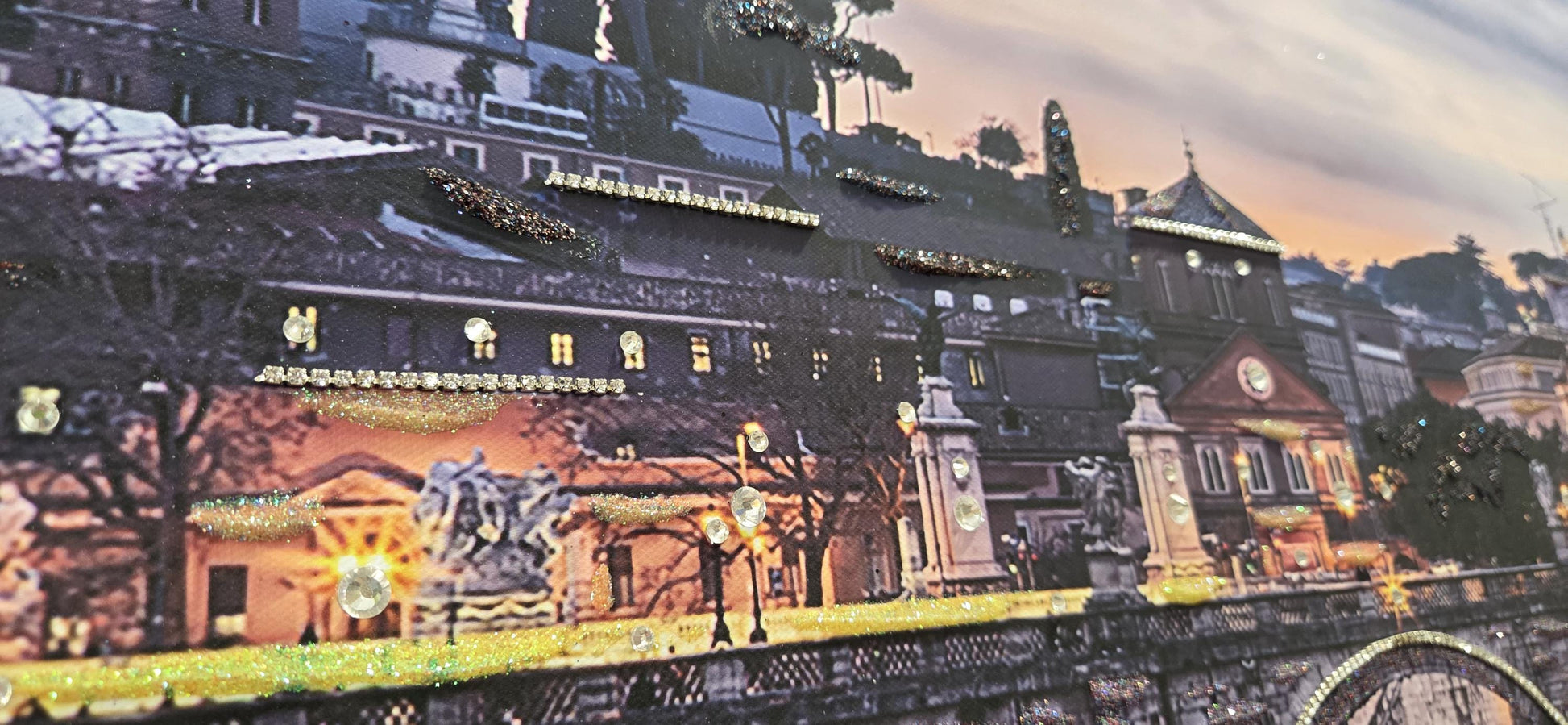 Quadro personalizzabile Roma su Tela 70x140 – Stampa Pittorica Fatta a Mano con Swarovski e Glitter | Arredo casa Classico e Moderno