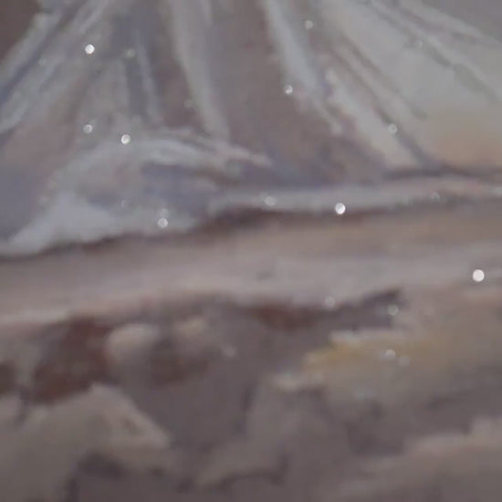 Completamente fatto a mano con pennello ad effetto pittorico a sbalzo e rilievo con decorazioni e applicazione glitter brillantinato, tela pittorica di altissima manifattura cotone /lino incrociato con disegno che gira sul bordo per un effetto immersivo ancora più impattante e telaio di abete lamellare aggiuntato levigato per una massima stabilità trattato per antitarlo e agenti atmosferici il tutto con trattamento vernice damar finale che ne consolida a vita i colori e la brillantezza.