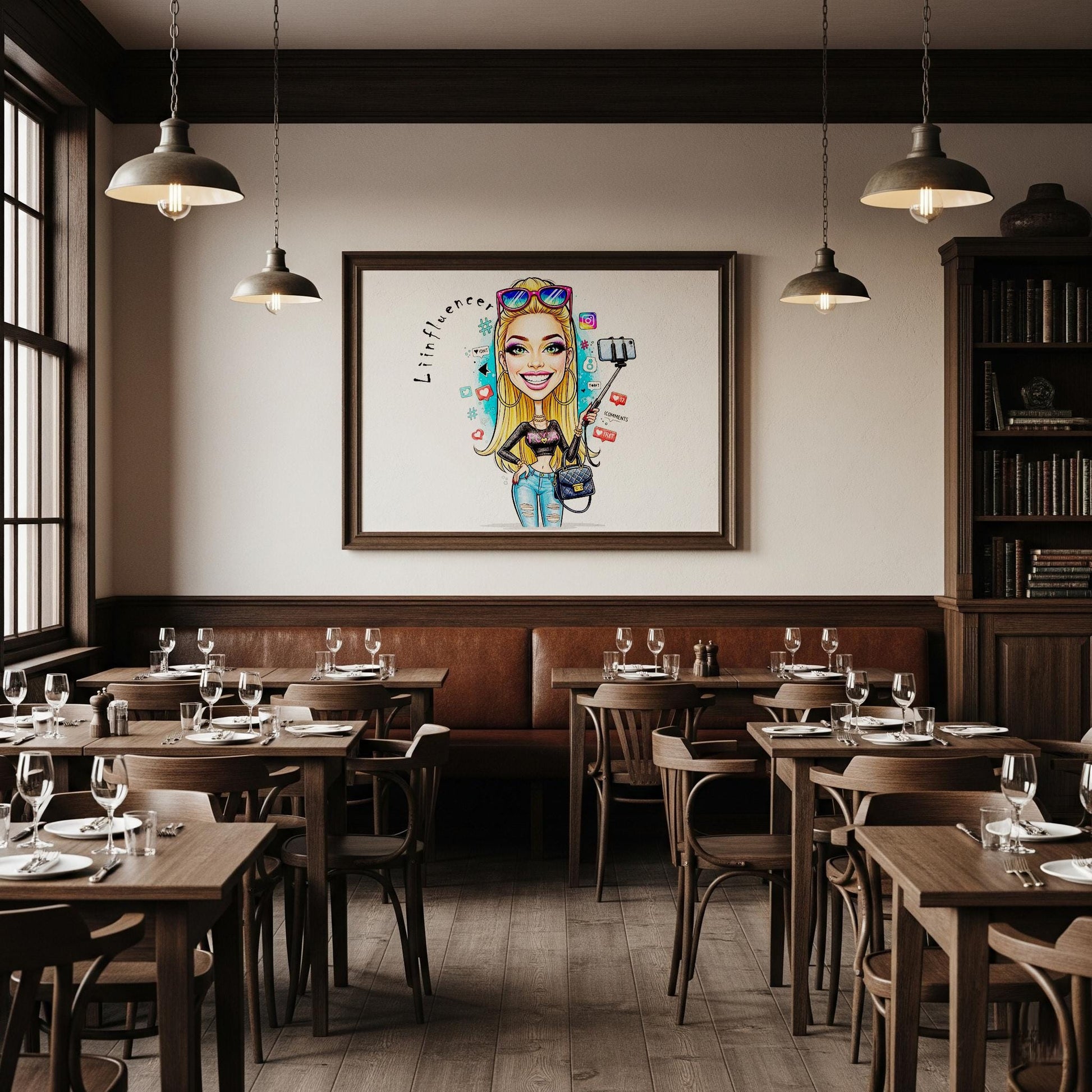 Quadro Caricatura Influencer– Bozzetto Originale su Tela | Idea Regalo Personalizzabile per Casa e Ufficio Classico, Moderno, Vintage