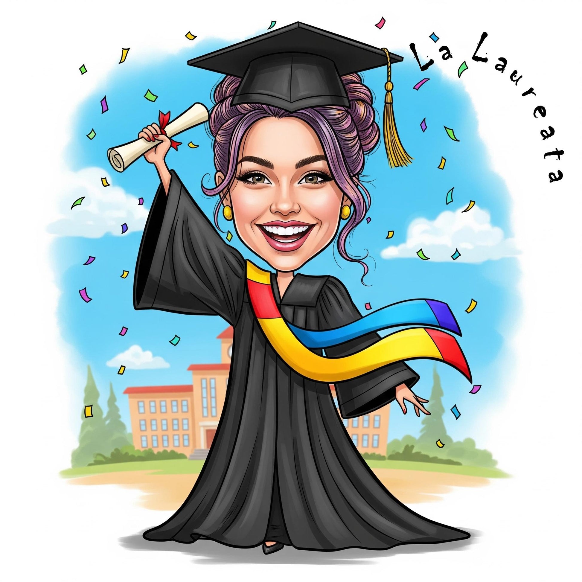 Quadro Caricatura Laureata– Bozzetto Originale su Tela | Idea Regalo Personalizzabile per Casa e Ufficio Classico, Moderno, Vintage