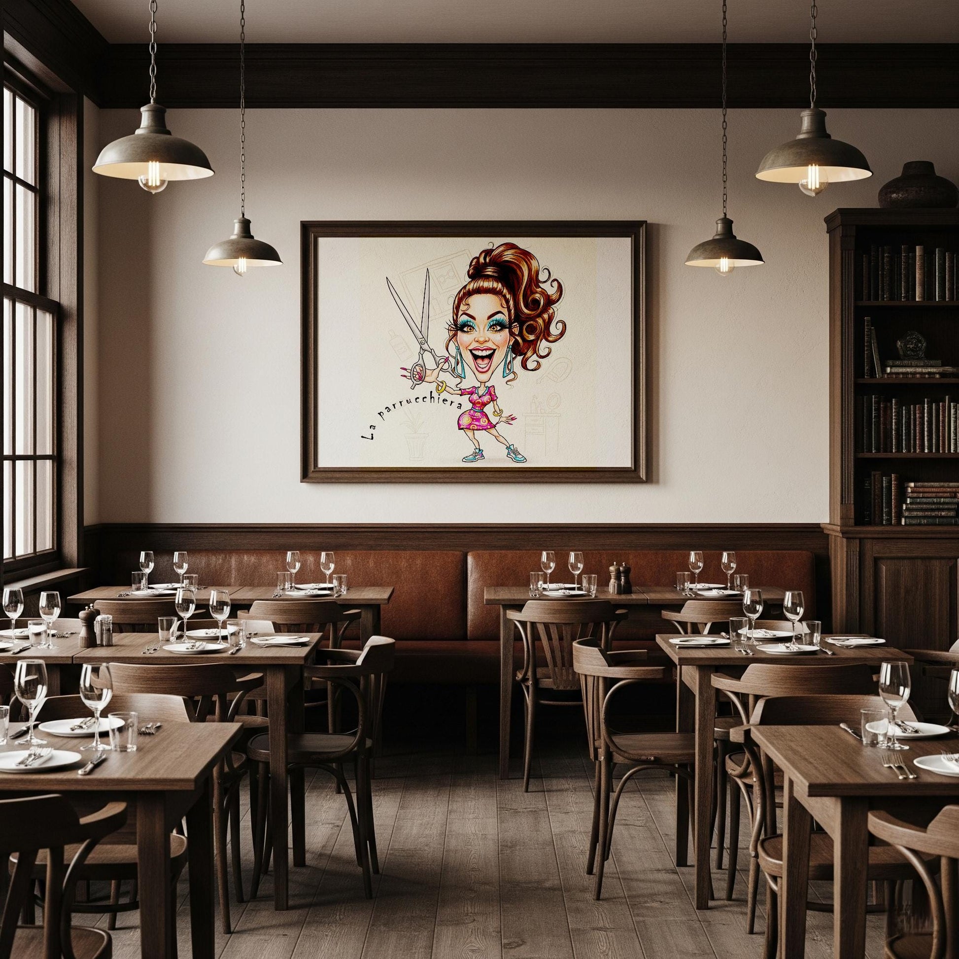 Quadro Caricatura Parrucchiera– Bozzetto Originale su Tela | Idea Regalo Personalizzabile per Casa e Ufficio Classico, Moderno, Vintage