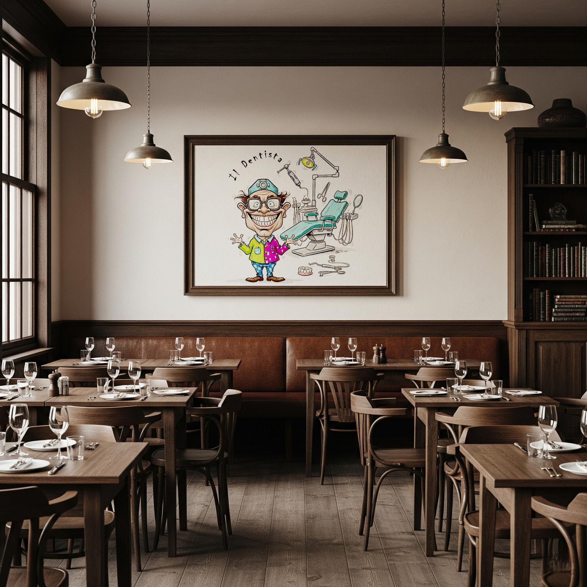 Quadro Caricatura Dentista– Bozzetto Originale su Tela | Idea Regalo Personalizzabile per Casa e Ufficio Classico, Moderno, Vintage