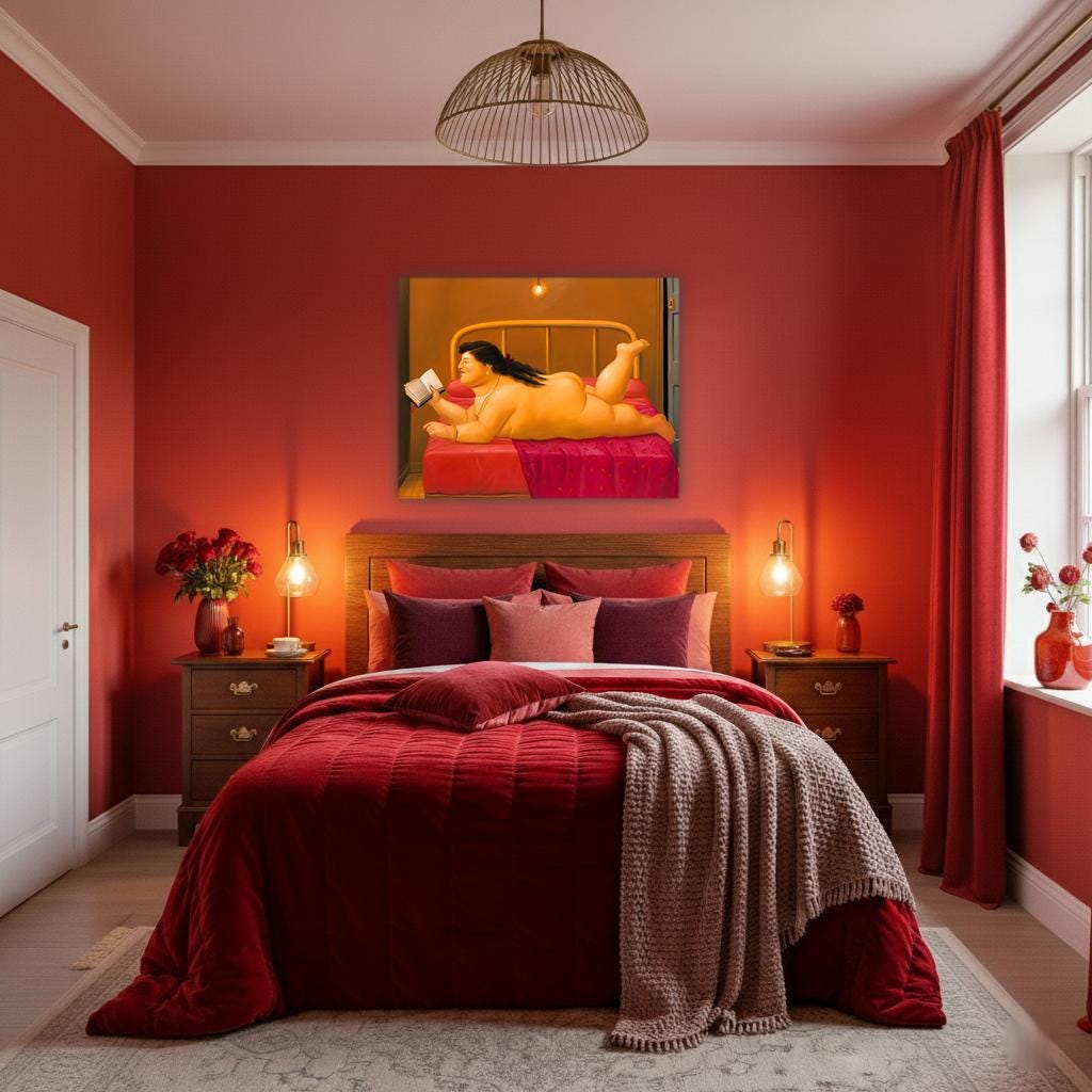 Quadro personalizzabile Donna che Legge Stile Botero – Stampa su Tela Effetto Dipinto a Mano | Arte Murale Casa o Ufficio