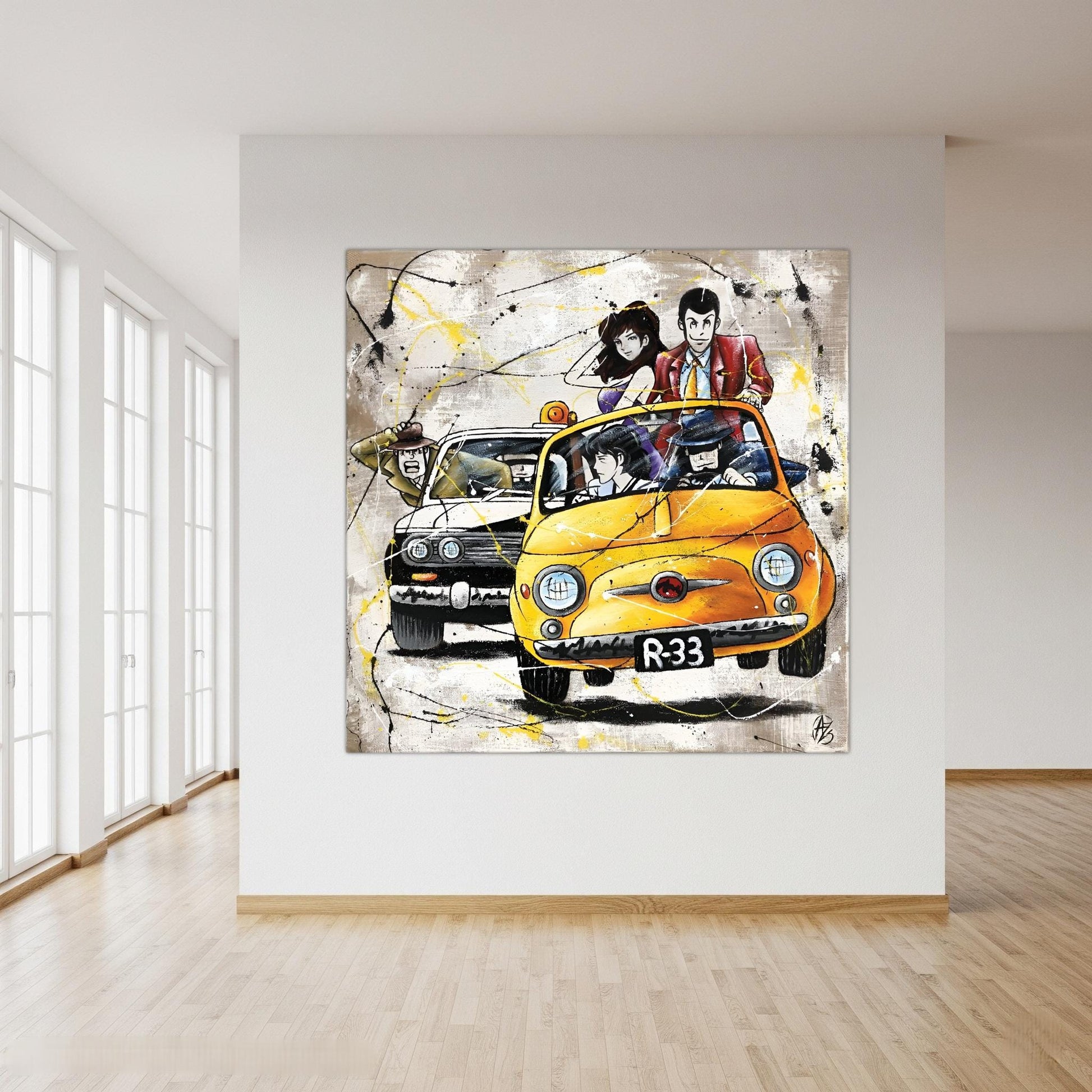 Stampa Artistica personalizzabile Ispirata a Lupin – Investigatore e Ladro in Macchina | Quadro su Tela per Arredo Moderno o Classico
